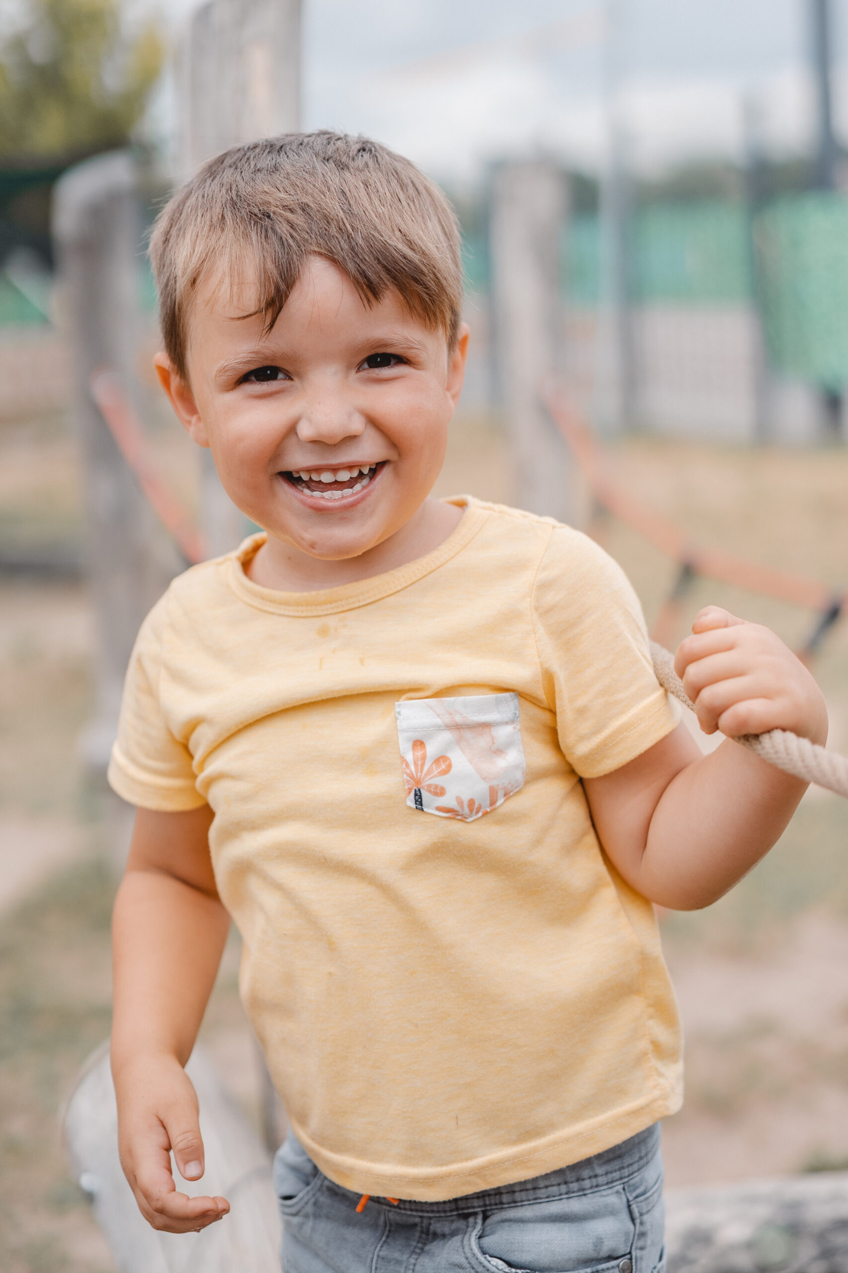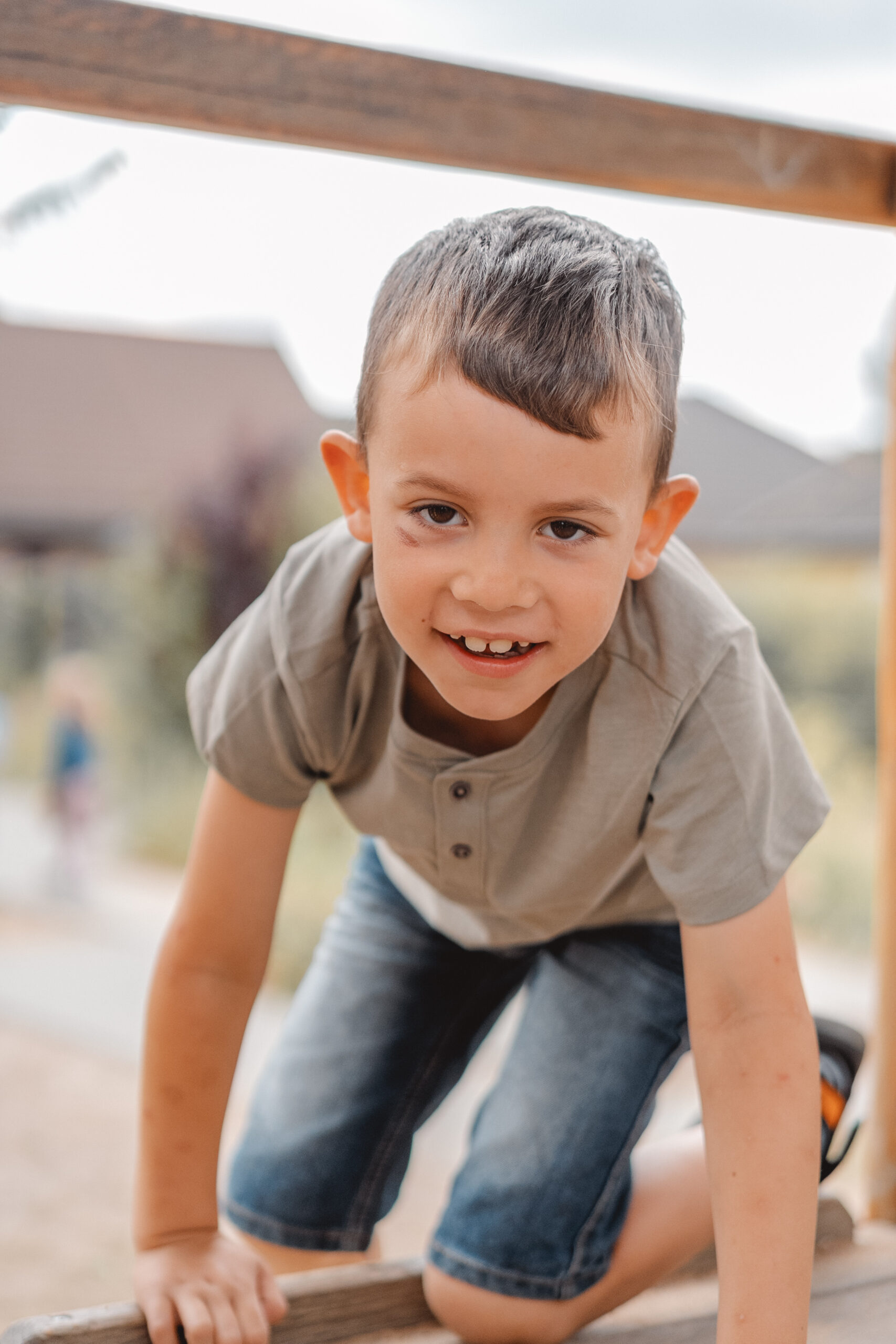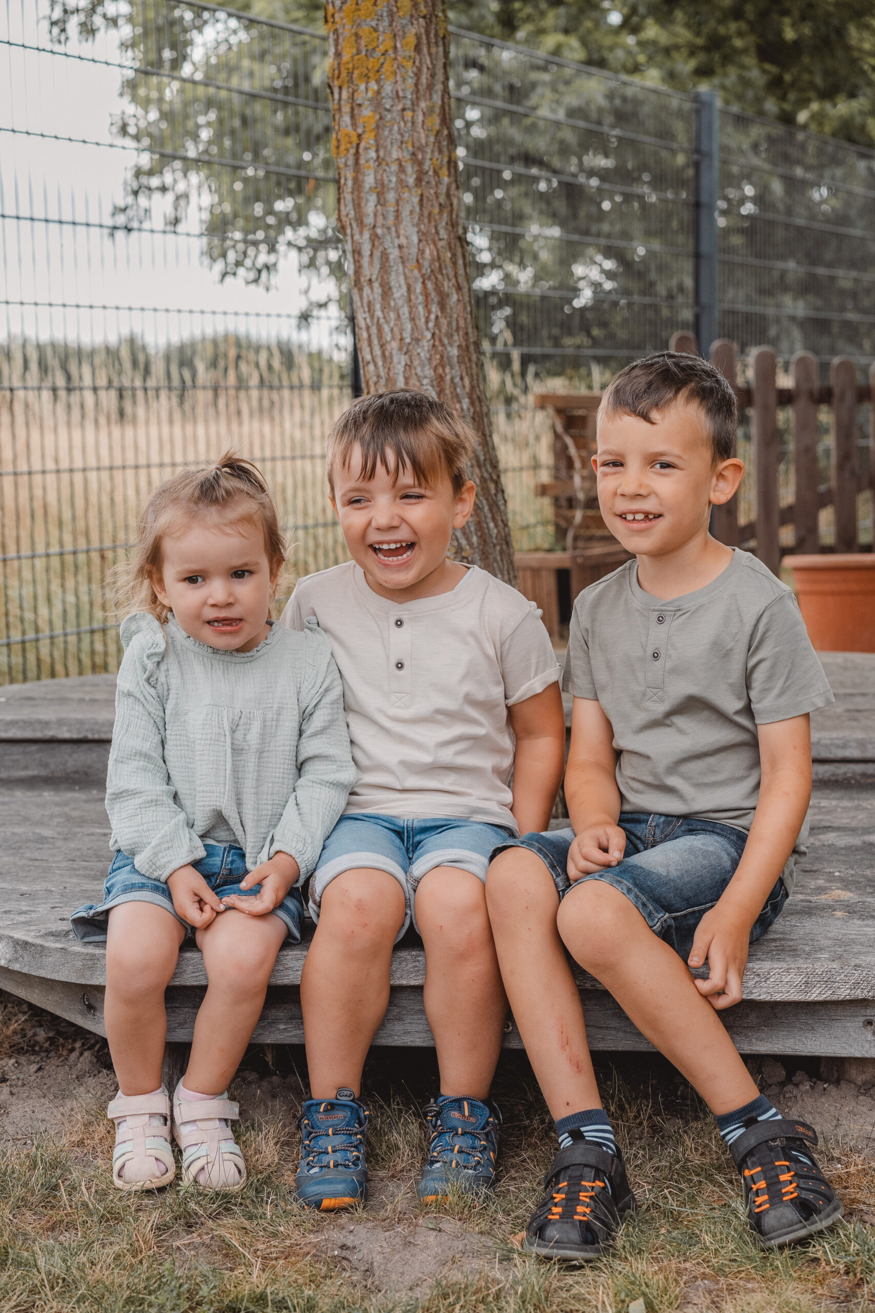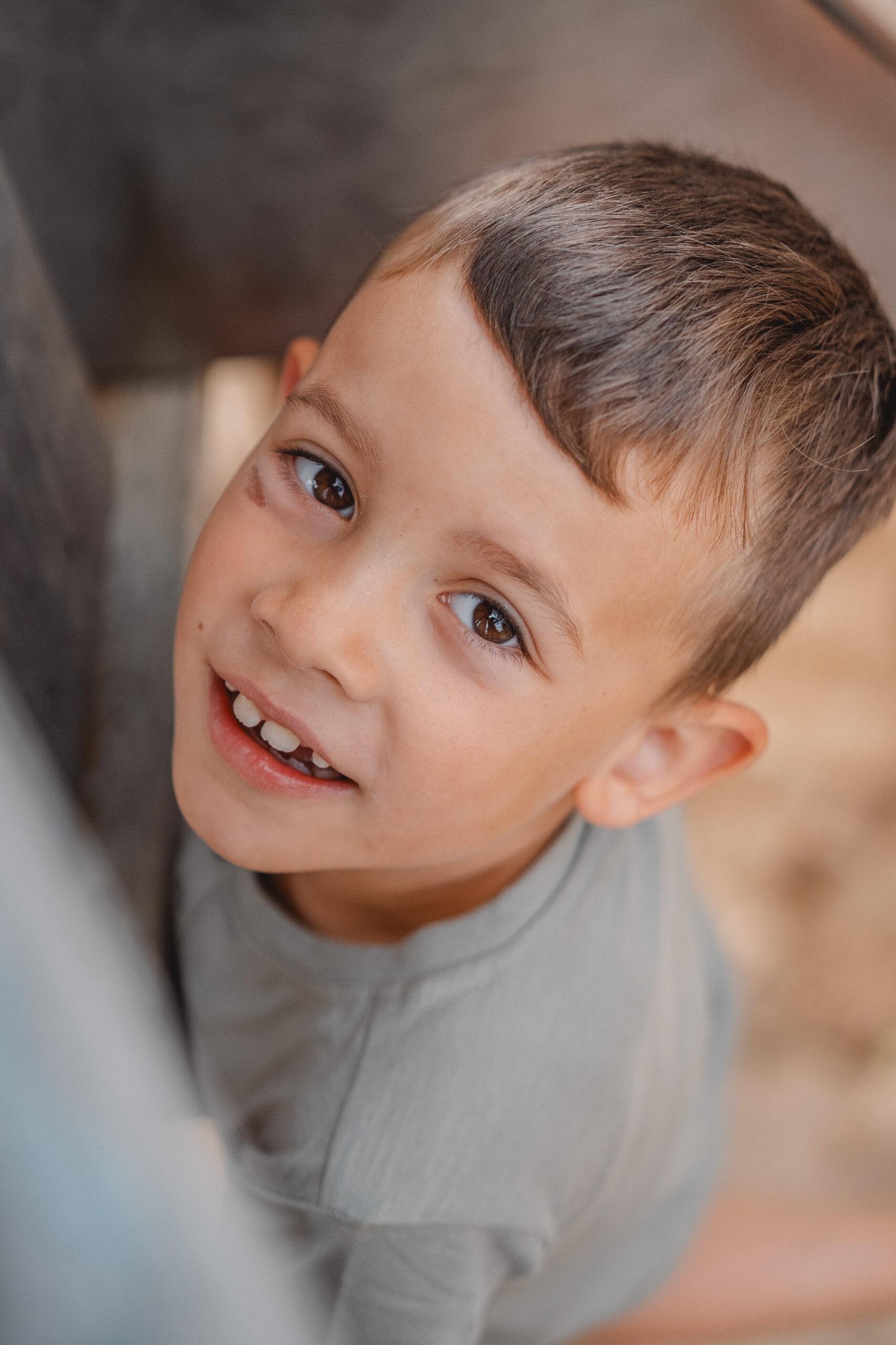 Jedes Kind bringt seine eigene Welt mit. Manche sind neugierig und voller Energie, andere beobachten erst einmal still. Manche lachen laut, andere zeigen ihr schelmisches Grinsen nur für einen kurzen Moment. Genau dafür nehme ich mir Zeit. Ich begegne den Kindern auf Augenhöhe, spiele mit, höre zu und lasse Raum entstehen. Ohne Druck. Ohne starres Posieren. So dürfen sie so sein, wie sie sind – verträumt, wild, schüchtern oder albern.