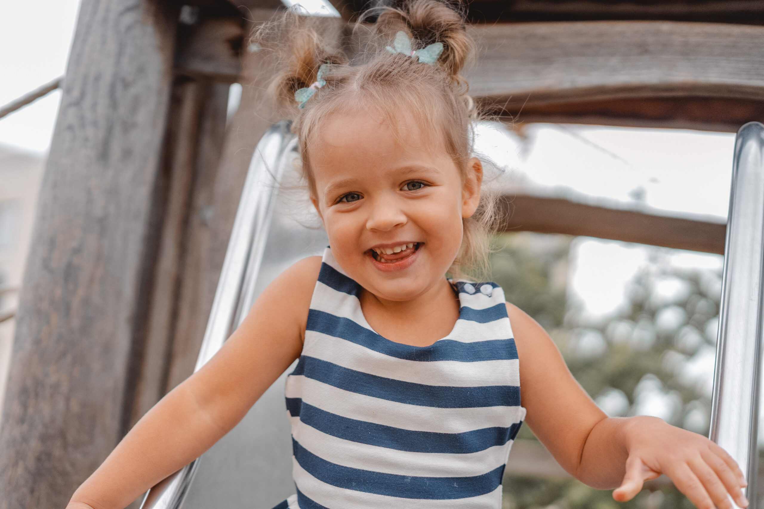 Jedes Kind bringt seine eigene Welt mit. Manche sind neugierig und voller Energie, andere beobachten erst einmal still. Manche lachen laut, andere zeigen ihr schelmisches Grinsen nur für einen kurzen Moment. Genau dafür nehme ich mir Zeit. Ich begegne den Kindern auf Augenhöhe, spiele mit, höre zu und lasse Raum entstehen. Ohne Druck. Ohne starres Posieren. So dürfen sie so sein, wie sie sind – verträumt, wild, schüchtern oder albern.